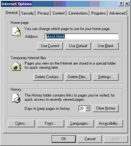 Go to the Tools menu, select the Internet Options, and click the General tab