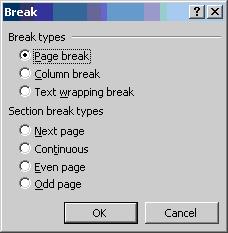 Look for Break types, select the desired break to be inserted and then click OK button.