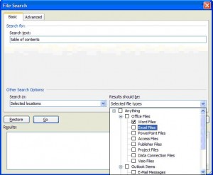 - In the Results should be field, uncheck all items except Word Files.